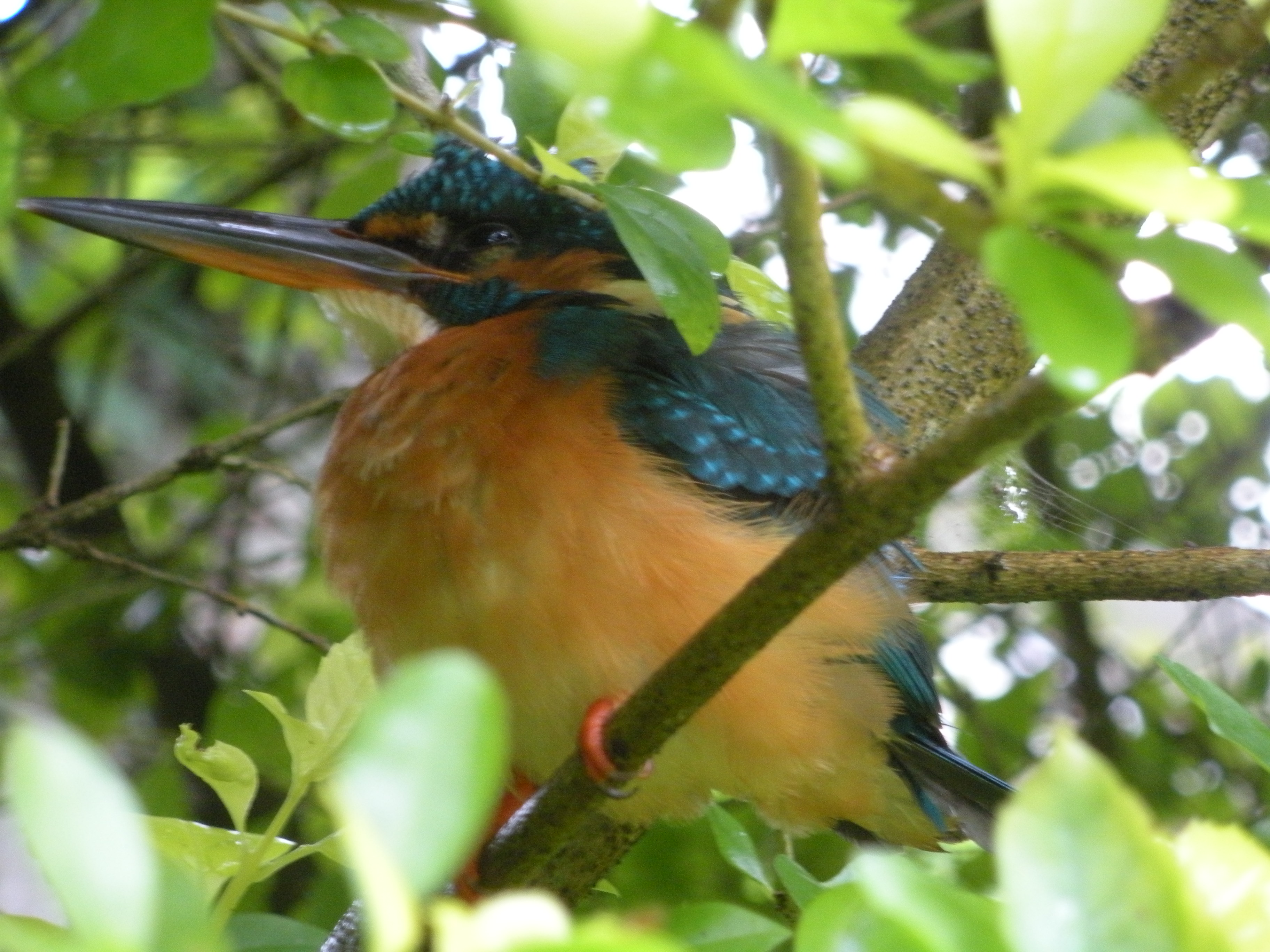 This is how my morning started, but thankfully, not how it ended. I quickly ran next door to the gift shop seeking help from Manoj, guest relations executive, thinking that he might know what to do. We approached the bush to find the bird still breathing. Manoj tugged at it gently, expecting to extract a paralyzed, fading animal. Then, with the same unexpected abruptness that it collided with the windowpane, it fluttered and flew away, as if all it needed was to be untangled from the branches it landed in. The kingfisher, disoriented, had another less than graceful clash, this time with the bushes that line the pool. Fearing again the worst, I approached, and it took flight again, finally landing as intended, perched on the branch of another of the poolside shrubs. It was stunned. As it took its time recollecting itself, I ran and got my camera to snap these photos.