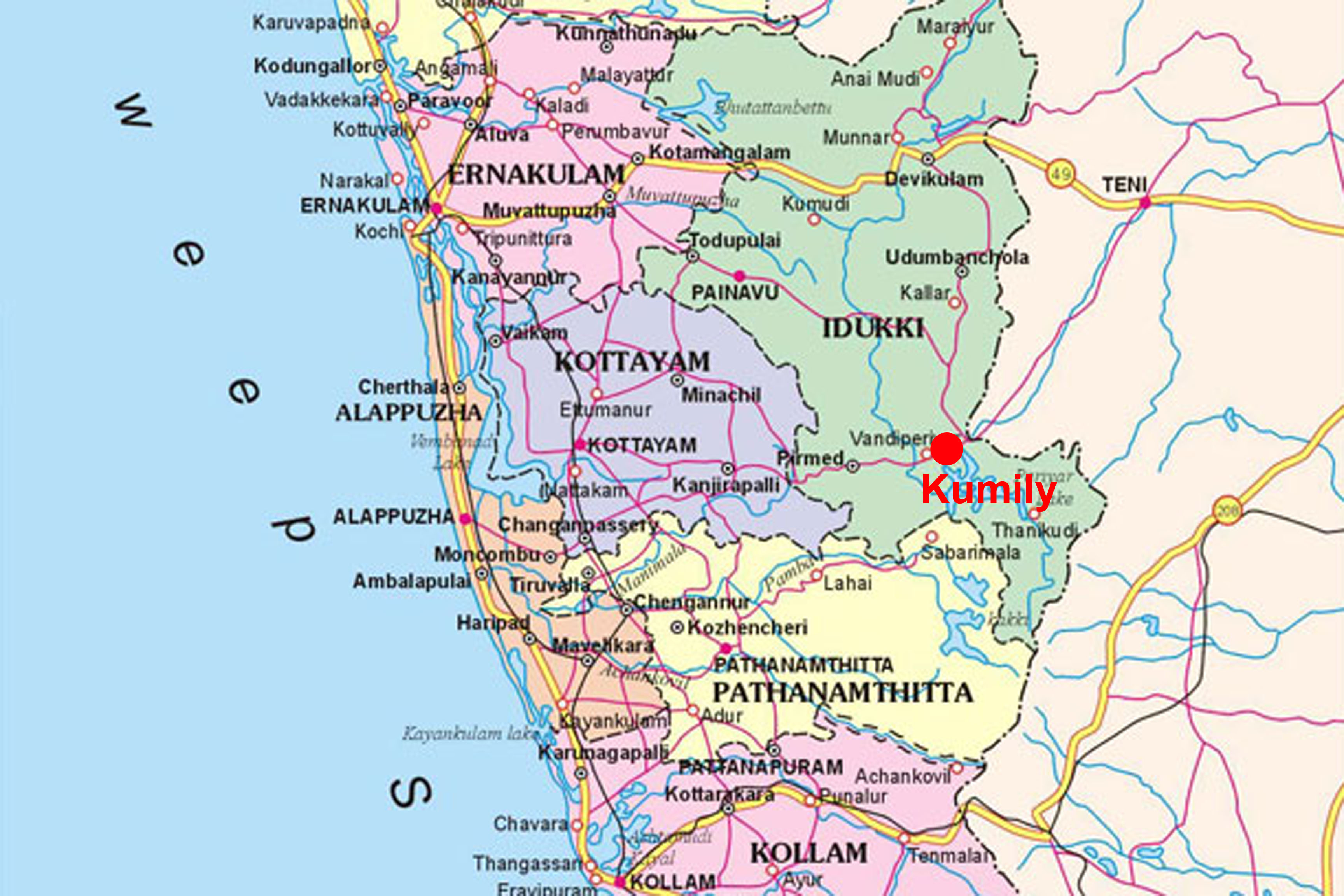 Cardamom County is located in Kumily, a small town adjacent to Thekaddy. Kumily is not as well known as Thekaddy as a tourist destination, which is one of the reasons why the resort’s official address is Thekaddy Road, Kumily. For many people one of the most interesting things about Thekaddy is its location: proximity to the Periyar Tiger Reserve. I found that the most interesting fact about Kumily’s location is that it is on the border of Kerala and Tamil Nadu.