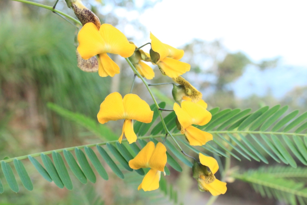 Sensitive Smithia is a low growing shrub found in and around the Western Ghats up to 1200 meters above sea level. It is flourishes along the roads as the monsoon trails off. The leaves are slightly sensitive to the touch, hence the name. The plant is enjoyed in multiple ways; bees feed off the the nectar of the flowers and people cook and eat the leaves and shoots as well as using other parts for Ayurvedic medicine.