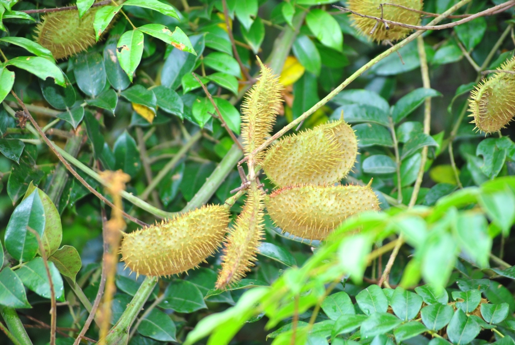 Fever Nut is a large thorny shrub bearing light yellow fruits covered with sharp thorns. Its commonly found in the tropical forests of the Western Ghats up to an altitude of 1000 meters. In Ayurveda the root of the plant is used for treating fever, cough, asthma, worms and colic. The leaves are anthelmintic and useful in treating elephantiasis.