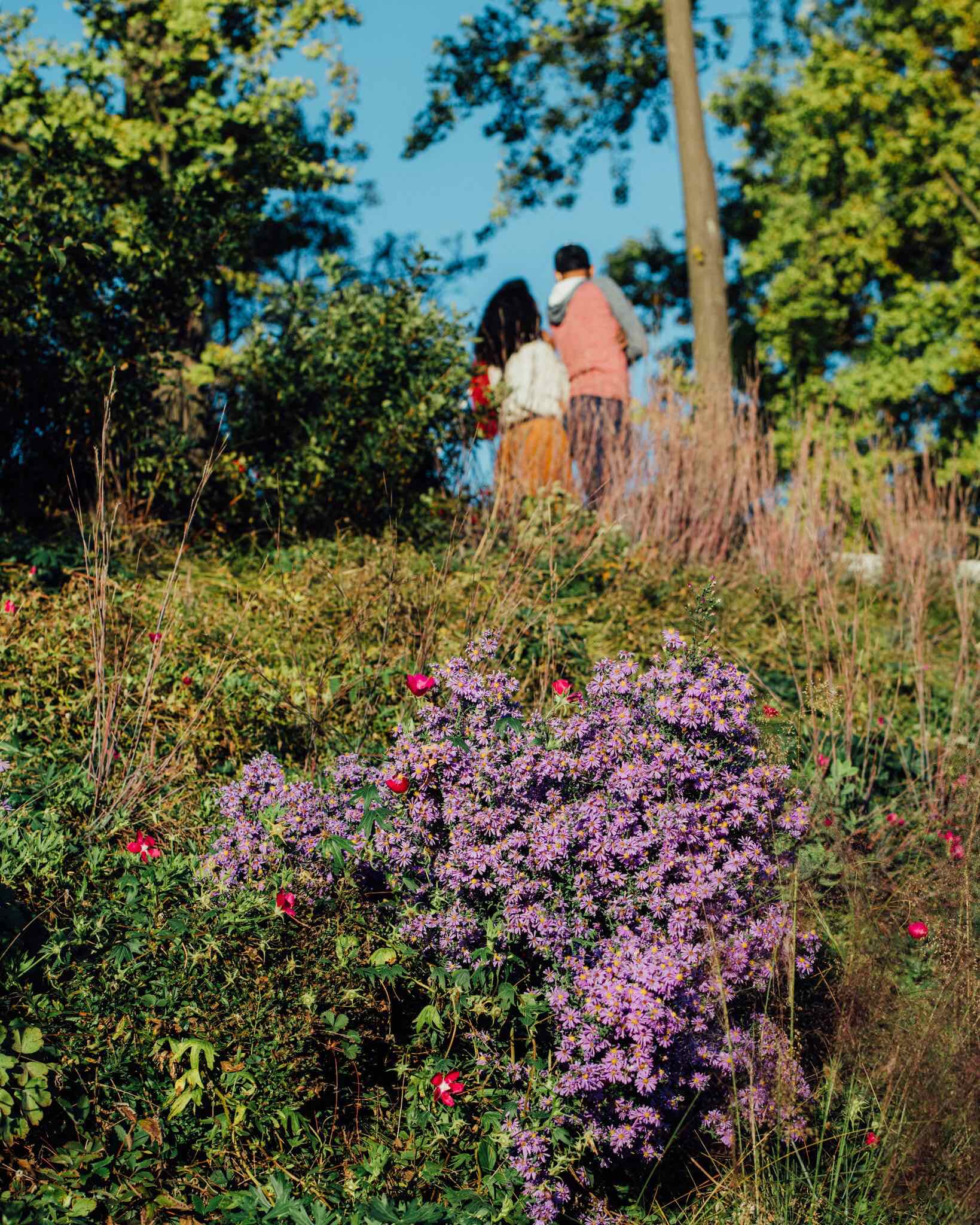 Lavender asters burst through ground-hugging meadow species at the overlook. George Etheredge for The New York Times