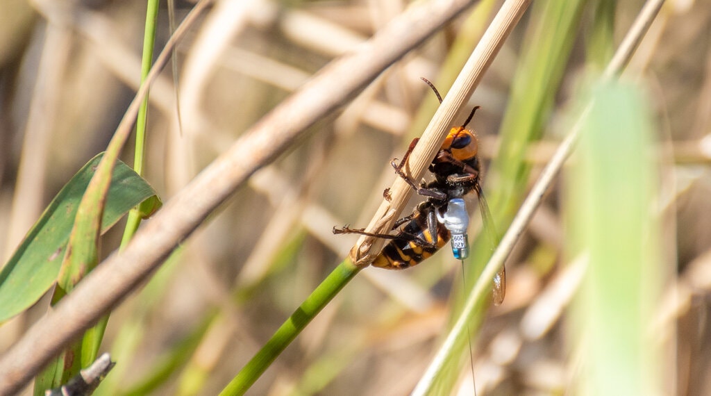 Hornets with radio trackers attached led entomologists to the nest. Washington State Department of Agriculture