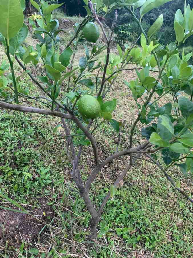 It occurs to me: this time next year we will be sweetening the lemonade. A year prior to planting poro saplings we planted several citrus saplings and they are already bearing fruit now; one more year will mean plenty of sweetened juice to go around.