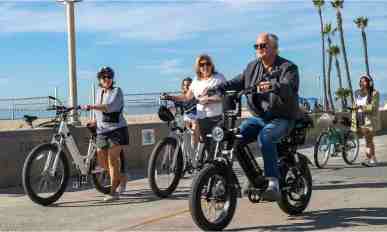 A man rides an ebike in Hermosa Beach, California. Photograph: Mel Melcon/Los Angeles Times/Getty Images