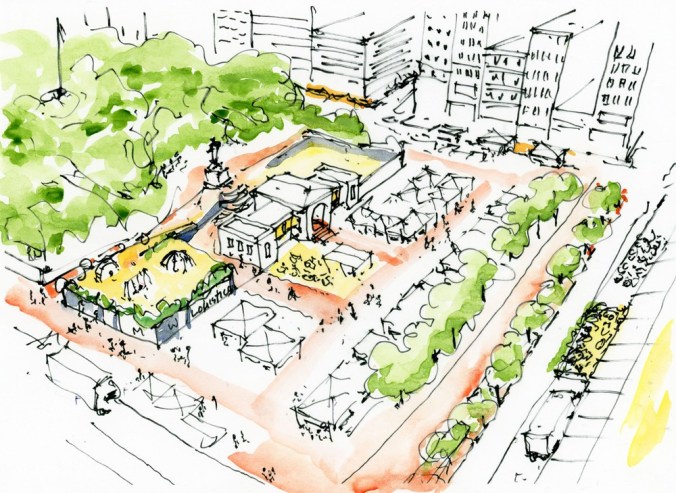 “Envisioning Union Square’s Vibrant North Plaza” – Watercolor by Guido Hartray