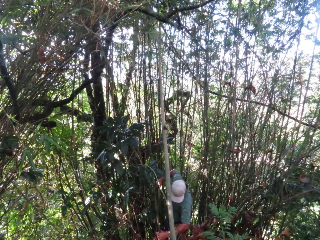 And so it was that Edwin (José Luis‘s brother) and I found ourselves in two of the several bamboo groves on Xandari property with a saw and a machete on Tuesday. We started out with a simple sketch design of our planned tree based on the images we’d seen of the Indian version, then set out to cut a couple bamboo poles for the construction phase. We knew we’d need three 2.1 meter poles for the pyramid sides, so we got them from one type of medium-thickness bamboo. Then we needed twenty-one rods of seven different lengths (see design photo above), so we went to a grove of thinner type of bamboo. Continue reading