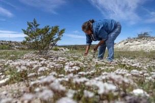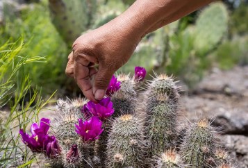 Cassadore picks the petals off a flowering cactus during a foraging trip. She uses the petals in salads. Photograph: Gabriela Campos/The Guardian