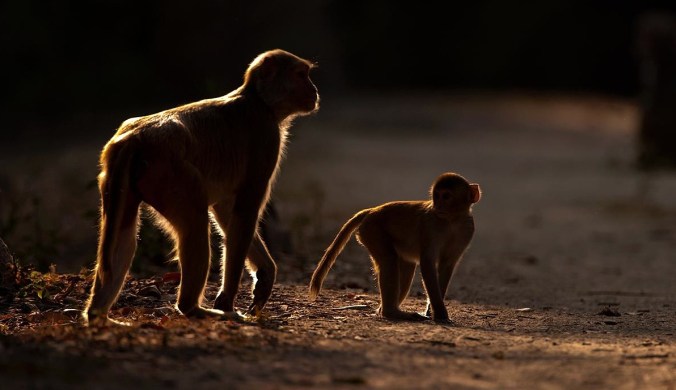 I was walking in this path at Bharatpur when I saw this group of Rhesus Macaques coming from behind me. I saw this light patch in front of me and stopped for the Macaques to cross that patch.