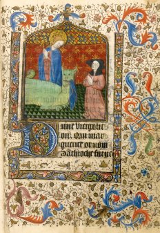 Illuminated manuscript featuring Saint Marina and the dragon Public domain via Wikimedia Commons