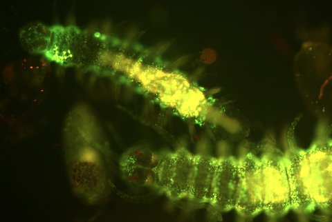 ©Elephant Listening Project. A thermal image of a juvenile forest elephant drinking minerals dissolved in water at the Dzanga Bai, Central African Republic. Different color palettes can be selected for the images (this one used “rainbow”) while the videos and the image at right were captured using the “iron” color palette.