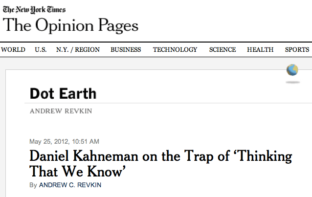 Andrew Revkin’s contributions to the New York Times, via Dot Earth, make a subscription to their website worthwhile; add in video with Daniel Kahneman addressing the National Academy of Sciences, and the value skyrockets.  68 minutes and 51 seconds later, you will know more about what you do not know; and likely appreciate the way that knowledge reached you.