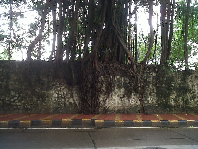 For anyone who has lived in a great city with street-level public transit the experience is familiar: traffic is a lullaby; snooze; random awakening; the window frames something that seems important. There are plenty of visual reasons to take a bus, for residents as well as visitors. This view was taken from such a window in Mumbai a few days ago, at a place that evoked a strong memory. Neither was it 5th Avenue at 60-something Street, nor was that Central Park behind the wall. But it was, for a moment. For one particular person. A madeleine, of sorts?