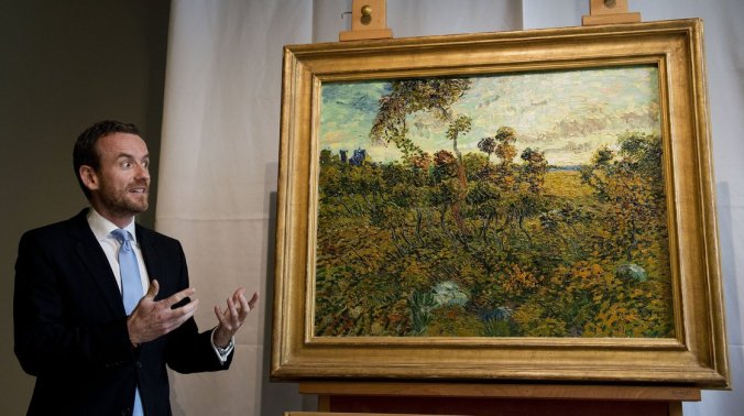 Alex Ruger, director of the Van Gogh Museum in Amsterdam, at the unveiling Monday of Vincent Van Gogh’s Sunset at Montmajour. Olaf Kraak /AFP/Getty Images