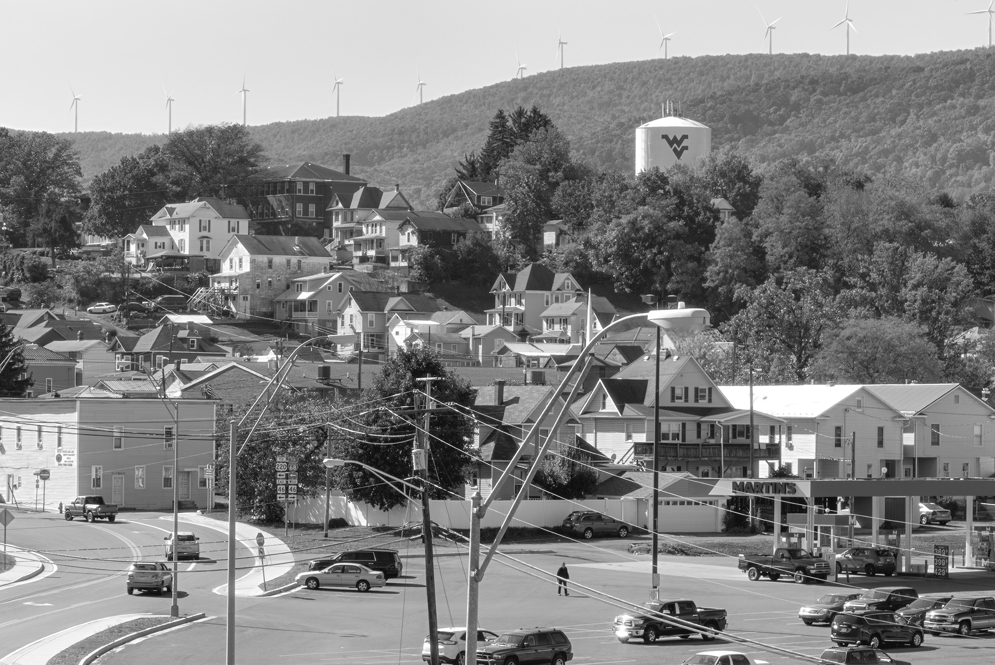 Pinnacle turbines dot the skyline in Keyser, West Virginia, where, according to Andrew Cosner, a twenty-one-year-old technician, some residents remain hostile to the new wind farm: “They say it ruins the landscape and it’s ugly.”