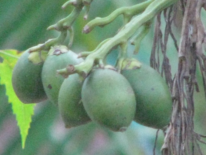 The Areca Nut palm tree is an unbranched, erect, medium sized monoecious (unisexual) tree growing in humid tropical regions. Its has fragrant, white flowers that mature into olive shaped, reddish-orange fruit, about 4-5 cm long in which lie the areca nut. The areca nut is a major commercial crop in India. These are often chewed along with betel leaves and hence are also called Betel Nuts.