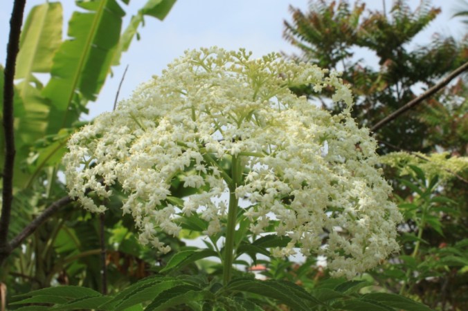 Native to the sub-tropical regions of Europe and Australia, Elderberry grows widely in Kerala’s Hill Range gardens above 1000 meters. The clustered berries are an important food for many birds and the flowers are a favorite for honey bees and other pollinating insects.