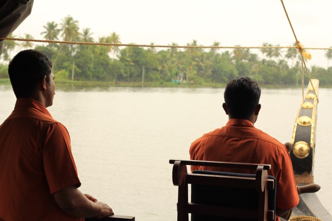 A few days ago, I had the privilege of going on one of the Raxa Collective River Escapes houseboats to tour the backwaters of Kerala and although it was quite rainy, it was still very beautiful. First off, the houseboat itself was fantastically designed for traveling the backwaters. While it contained all of the first class amenities that anybody could ask for, it did not go overboard (pun intended); instead of an abundance of glass and feeling as if you were in a bubble, other than the bedrooms the boat is open air, and as the cool breeze danced across your face, it really felt like you were out on the backwaters.