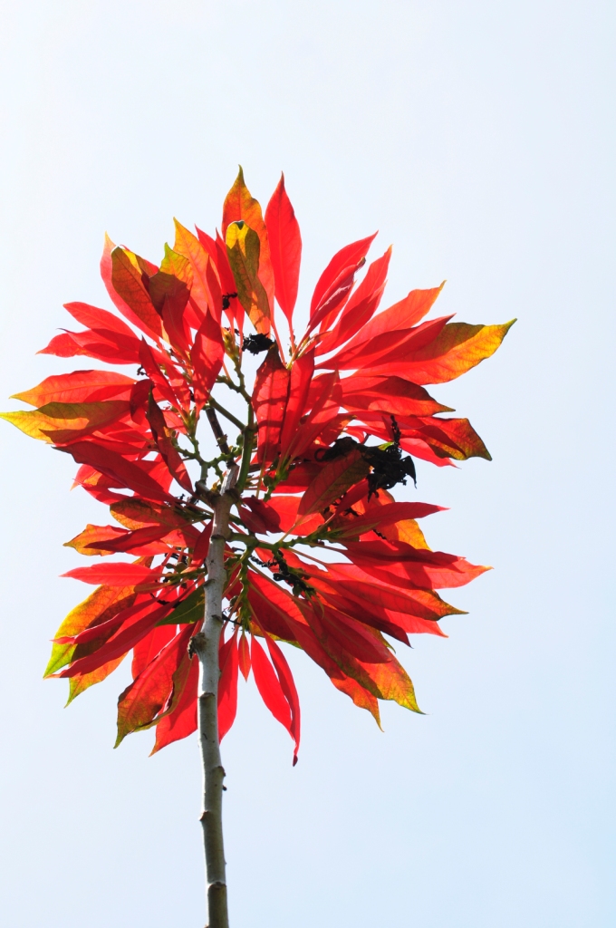 Two days ago, when I went for a morning walk in the Periyar Tiger Reserve, the spectacular show of bright crimson flowers attracted my eyes and forced me to stop and take photos. Due to the change of seasons, the trees are shedding their leaves and putting their energy into blooming flowers–and the results are fabulously picturesque.