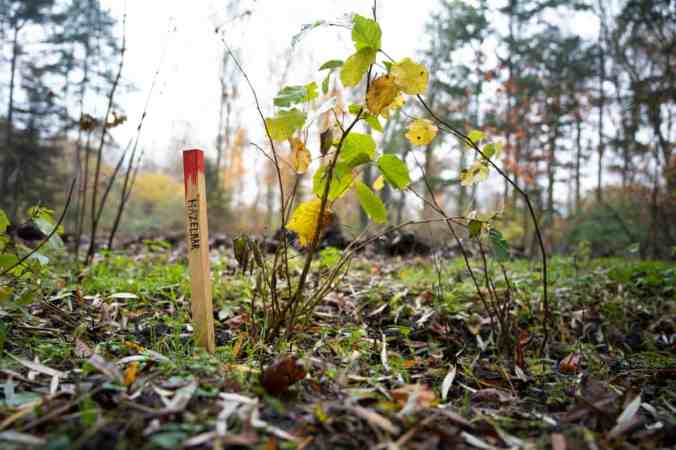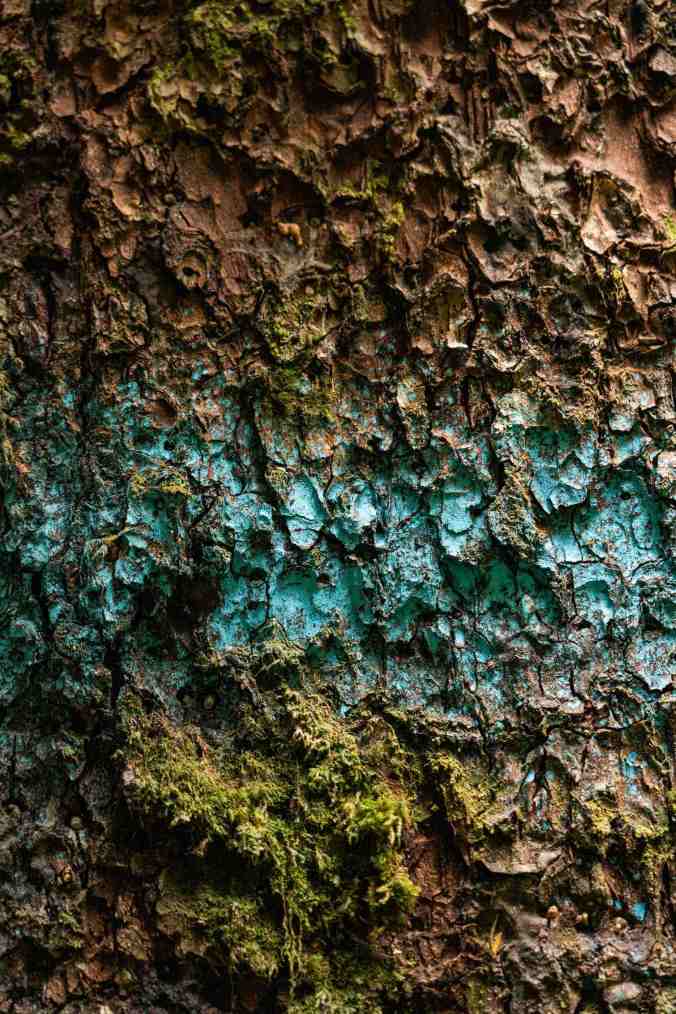 The trunk of the Sitka spruce marked to be cut down.