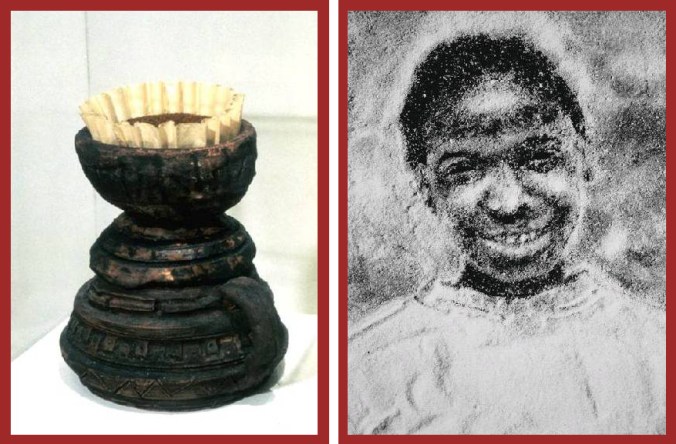 A mid-career retrospective, currently mounted at the High Museum of Art Atlanta covers the full range of his work from grand to microscopic scale, using diverse media—including food, dust, string, sugar, magazine clippings, and literal junk.