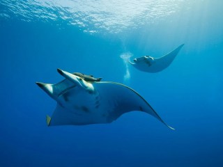 Chilean devil rays swim in the Atlantic Ocean near the Azores. Reinhard Dirscherl / ullstein bild via Getty Images